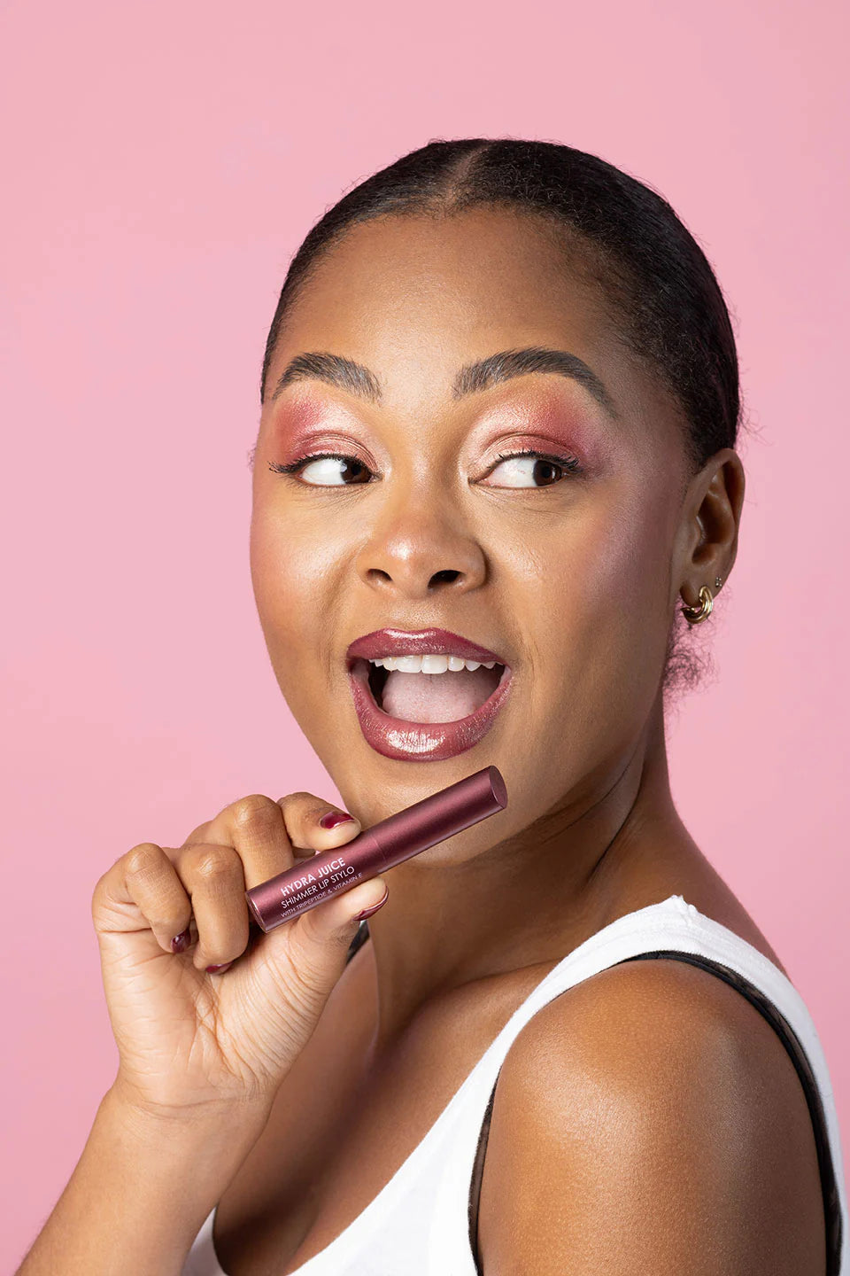 Εμπλουτισμένο με Πεπτίδια & Βιταμίνη E, το κομψό Hydra Juice Shimmer Lip Stylo προσφέρει έντονο χρώμα και shimmer σε απόχρωση mocha nude με άρωμα ψημένου καφέ.